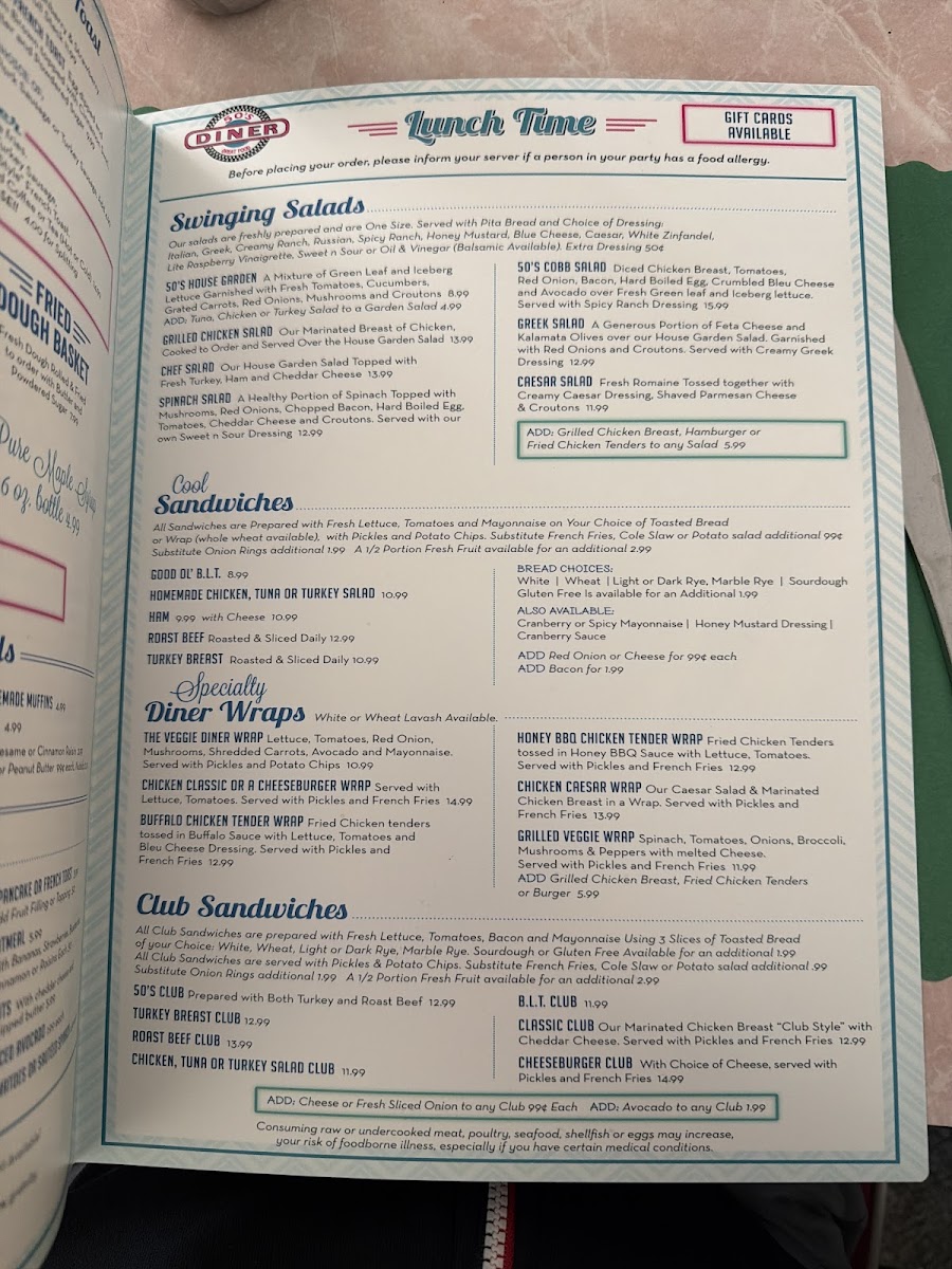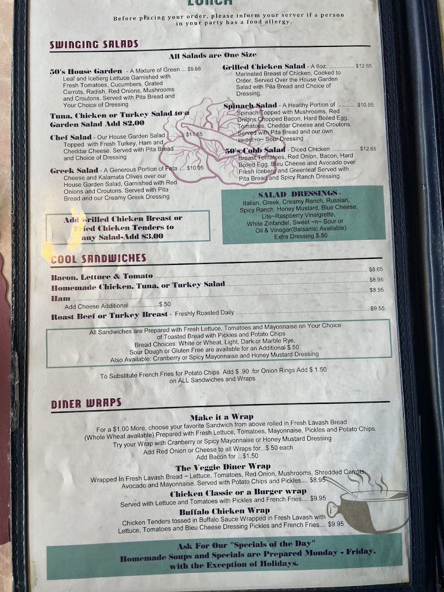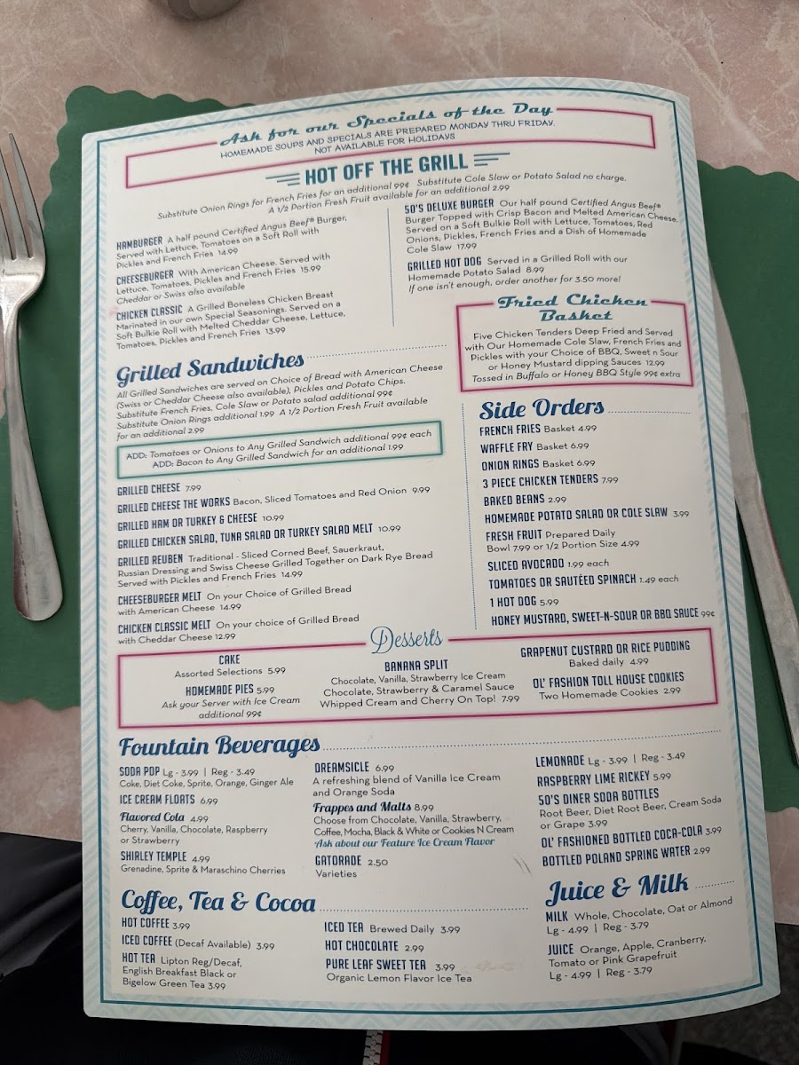 50's Diner Menu